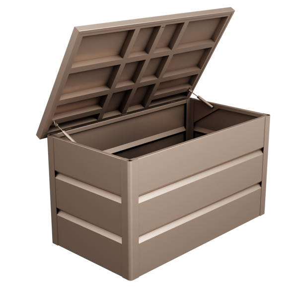 Mit großzügigem Fassungsvermögen bietet die Gartenbox ausreichend Platz für sämtliches Gartenzubehör. Sie sorgt dafür, dass Kissen, Abdeckungen und andere Gartenutensilien über Jahre hinweg sicher und ordentlich aufbewahrt werden. Hergestellt aus hochwertigem, pulverbeschichtetem Aluminium, ist die Box besonders wetterbeständig und langlebig- ideal für den Einsatz im Freien.