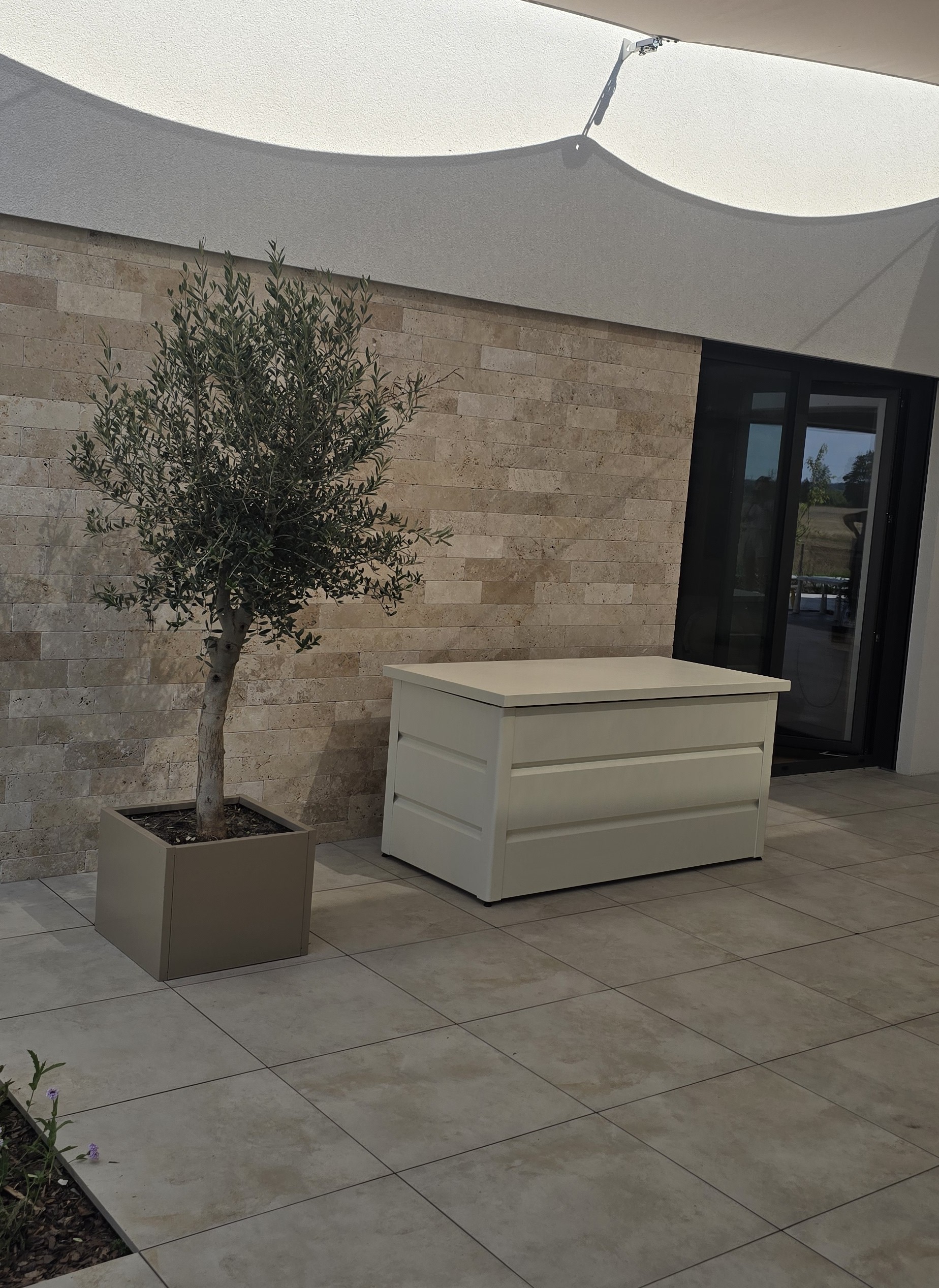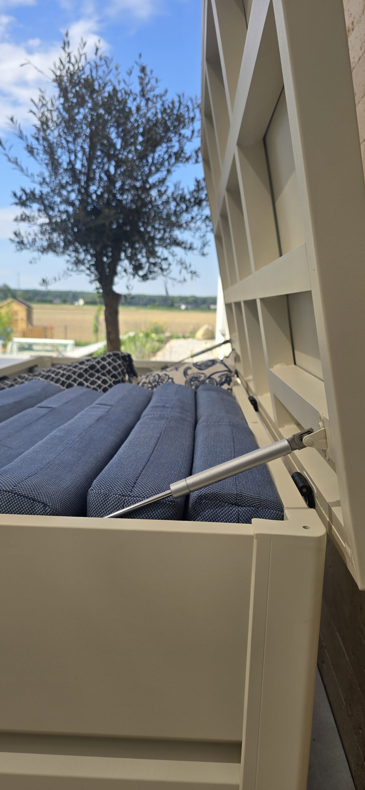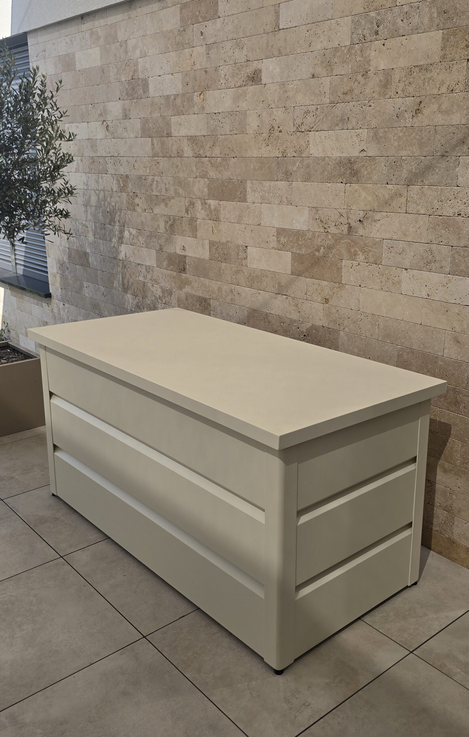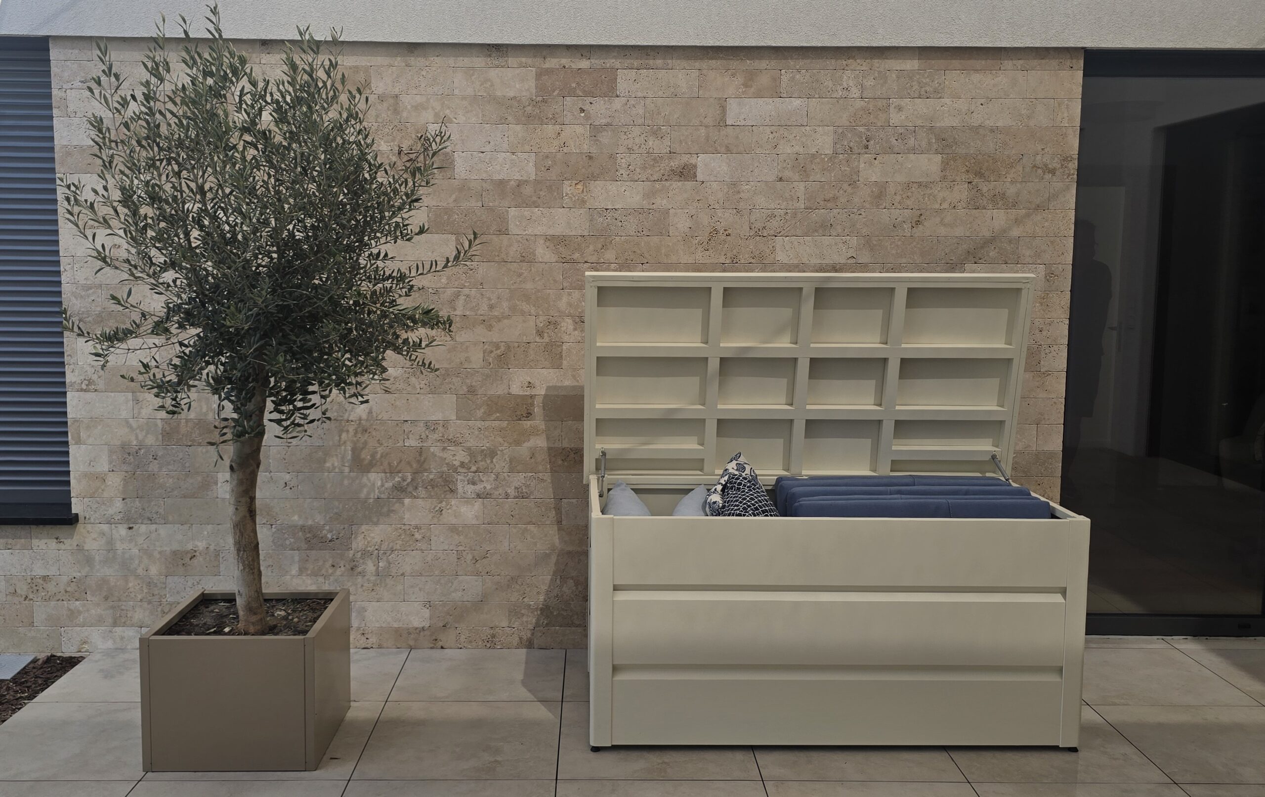 Mit großzügigem Fassungsvermögen bietet die Gartenbox ausreichend Platz für sämtliches Gartenzubehör. Sie sorgt dafür, dass Kissen, Abdeckungen und andere Gartenutensilien über Jahre hinweg sicher und ordentlich aufbewahrt werden. Hergestellt aus hochwertigem, pulverbeschichtetem Aluminium, ist die Box besonders wetterbeständig und langlebig- ideal für den Einsatz im Freien.